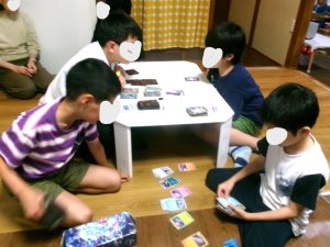 男子たちは中学2年生Sくんと一緒にポケカ。