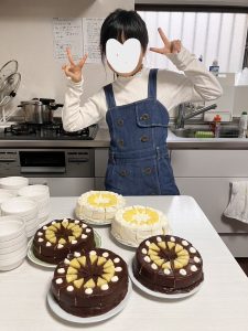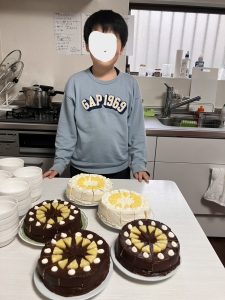 ケーキと一緒に写真を撮りましたがうれしそうでした。