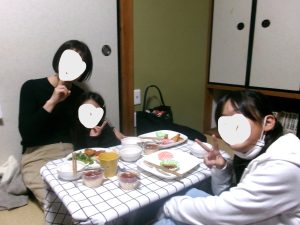 食事は家族ごとでいただき、2年生女子は、パパの参加率も高め!