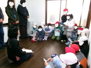 この日は、グループごとに分かれて、警察署や保育園などなど。