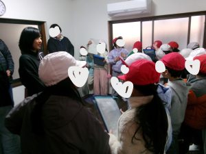 12月5日(金)芥川小学校2年生の子どもたちが、授業の一環の「街たんけん」のインタビューで、にじのいえ真上に来てくれました。