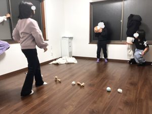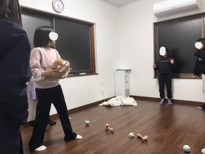 通称奥の部屋も広いので(この部屋は体を動かす遊びもある程度OK)先日は、女子たちがドッジボール(紙のボールも自分たちで作って)をしていました^^