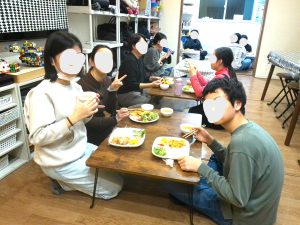 みんなでわいわいご飯を食べて。